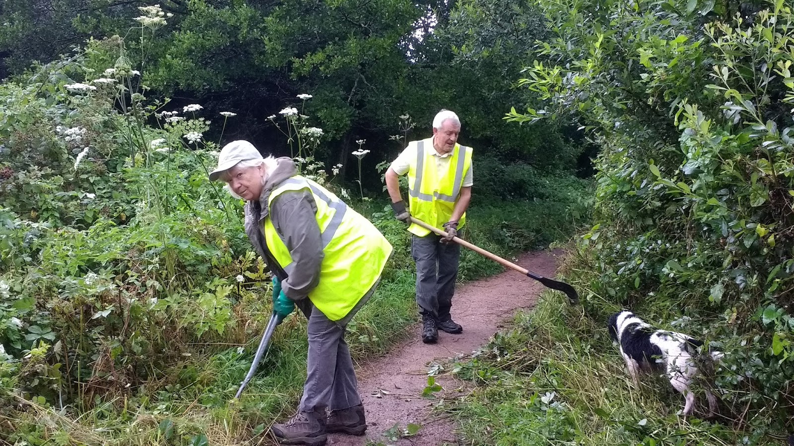 The rain stopped just before 10 a.m! 10 of us met at the Rhydyblewin entrance and set to work.The painting of the new gate was postponed (it was too wet) so we started to tackle the undergrowth which threatened to take over the path.